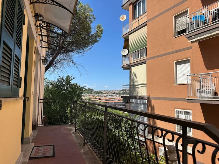 Stan ima pristup zajedničkom vanjskom prostoru s doista posebnim pogledom: s desne strane možete uživati u pogledu na povijesne vatikanske zidine, dok se s lijeve strane pruža panoramski pogled na grad odozgo.