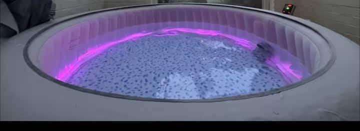 Opustite se u našoj luksuznoj masažnoj kadi na napuhavanje s moćnim mlaznicama i osvjetljenjem. Bilo da je riječ o mjehurićima koji se pojavljuju pod plavim nebom ili o živopisnim ljubičastim nijansama noću, ovo je savršeno mjesto za opuštanje tijekom vašeg boravka