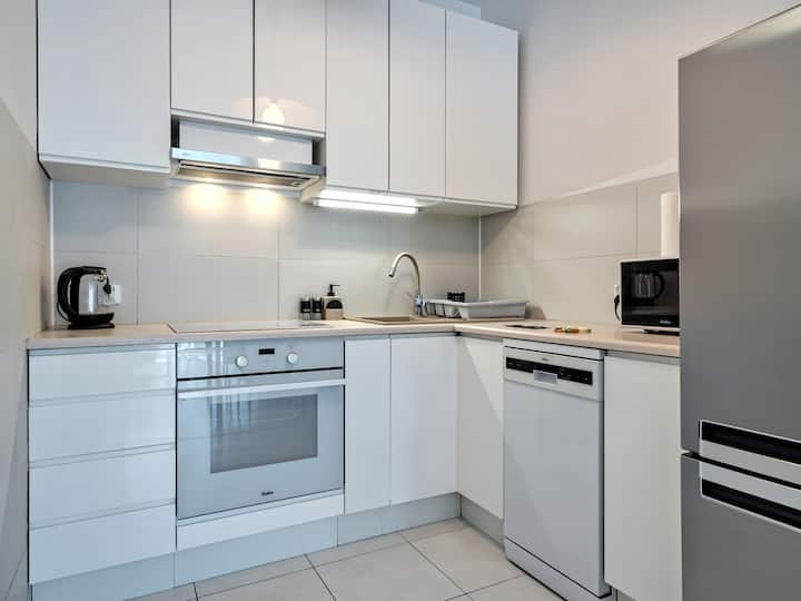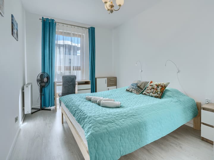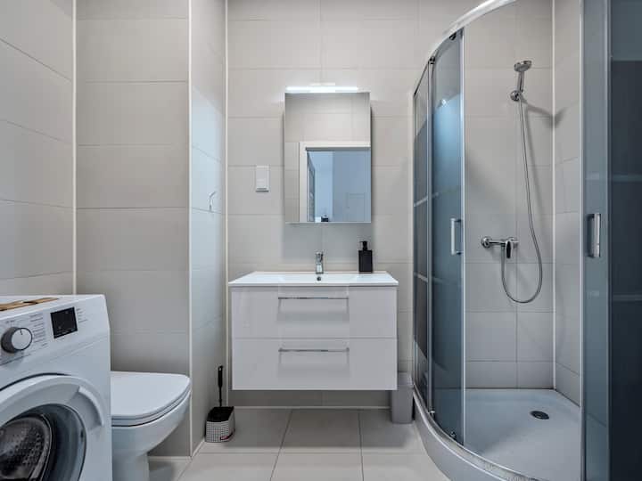 Dobro došli u svoj moderni stan od 40 m² koji se nalazi na 3. katu i savršen je za najviše 4 gosta. U prostoru se nalaze dvije odvojene sobe s udobnim bračnim krevetom i kaučem na razvlačenje, što je idealno za parove, obitelji ili poslovne putnike. Uživajte u jutarnjoj kavi na privatnom balkonu s lijepim pogledom i iskoristite brzi Wi-Fi i pametni TV za zabavu.