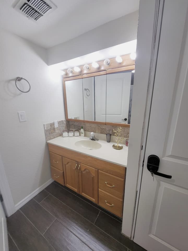 Gosti imaju privatni pristup cijelom donjem katu smještaja koji uključuje potpuno opremljenu kuhinju, udobnu spavaću sobu, udoban dnevni boravak i praonicu rublja s perilicom i sušilicom. Također ćete imati ekskluzivnu upotrebu prednjeg trijema - odlično mjesto za opuštanje uz šalicu kave ili opuštanje u večernjim satima.