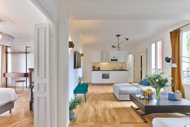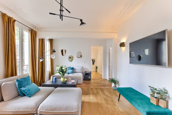 Ako tražite izvanredan iskustvo, naš stan od 120m ² nudi oličenje nezaboravnih pariških smještaja! S kapacitetom za ugošćivanje do 10 osoba, pet spavaćih soba i četiri kupaonice čine ga idealnim utočištem za radosna obiteljska ili prijateljska okupljanja.