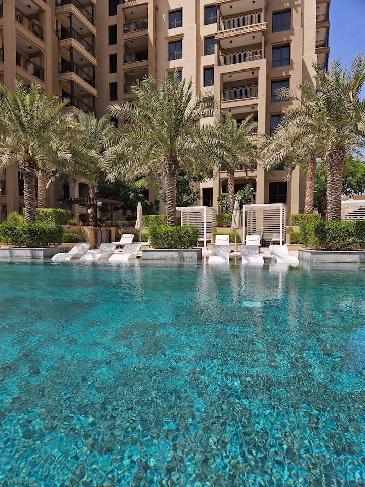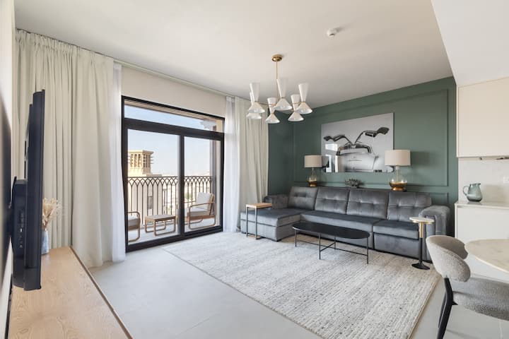 Prostrana 1 spavaća soba u MJL, bazen i teretana | Pogled na Burj Al Arab
