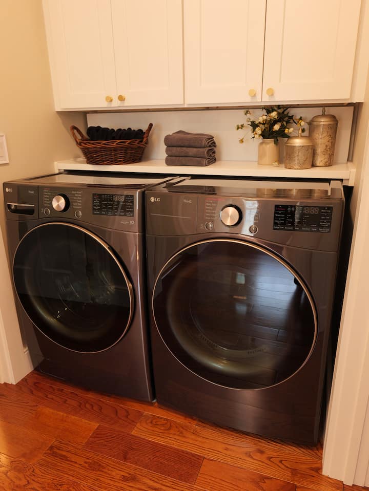 Na kraju hodnika na katu nalazi se prostor za pranje rublja kako bi svatko mogao održavati svoju odježu svježom i čistom tijekom boravka. Nova perilica i sušilica s prednjim punjenjem jednostavne su za rukovanje, tihe i praktično smještene u odnosu na sve tri spavaće sobe, tako da je pranje i vraćanje čiste odjeće svim gostima vrlo jednostavno.