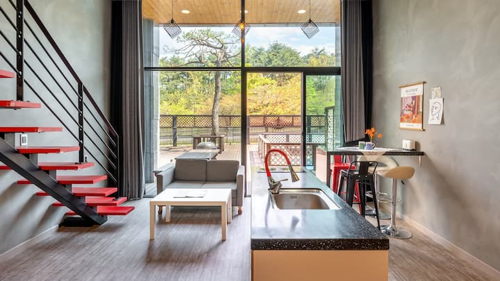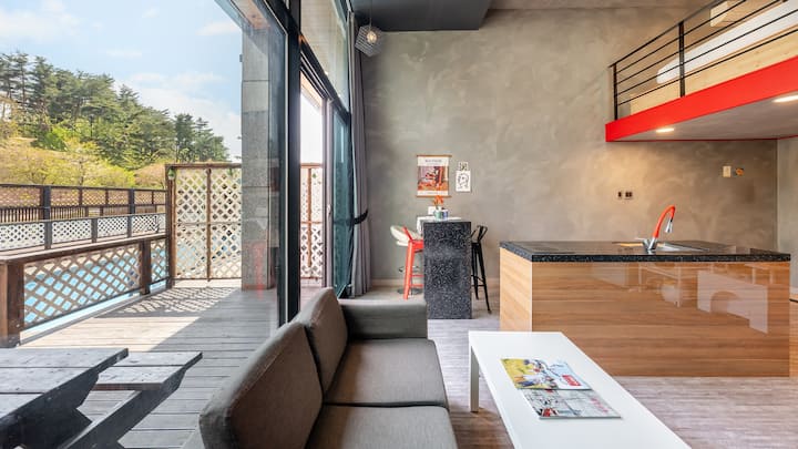 U pansionu Gangneung Asum, obitelji i parovi uživaju u privatnom bazenu i pojedinačnom roštilju kako bi dovršili poseban dan pun emocija i opuštajućeg putovanja.