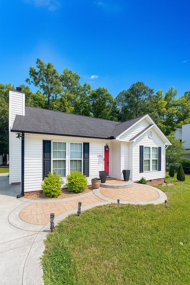 Opustite se u ovom mirnom smještaju koji je savršen za one koji rade na daljinu, obiteljske posjetitelje ili one koji žele idealan odmor. Ova renovirana seoska kuća nalazi se na samo nekoliko minuta od središta Raleigha i nudi udobnost kao kod kuće. Potpuno renovirani interijer omogućuje vam potpuno opremljenu kuhinju s otvorenim dnevnim boravkom, posebnim prostorom za rad, brzim Wi-Fi-jem i velikim spavaćim sobama s iznimno udobnim krevetima. Praktično smještena u blizini autoceste 540 i drugih glavnih ruta.