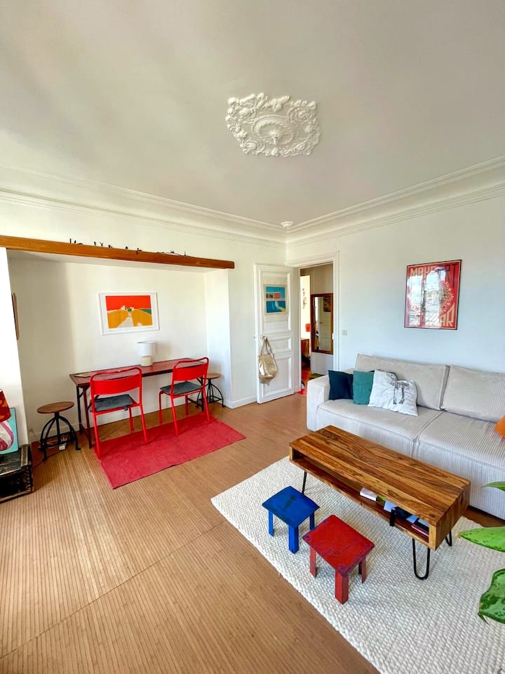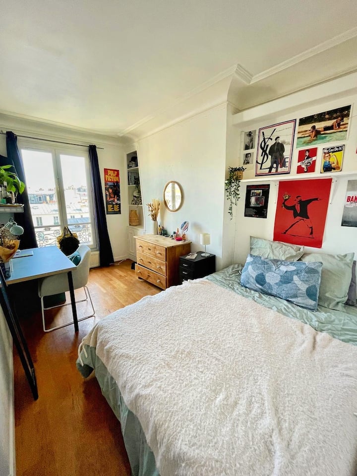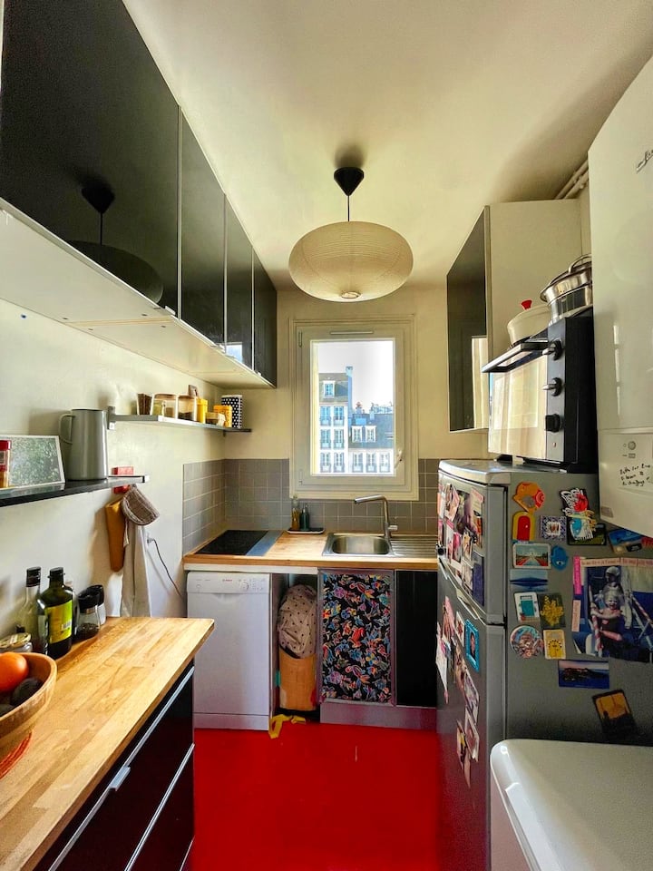Ja sam pravi Montmartroise i živim u ovom stanu sa svojim kćerima od rođenja. Imaju 17 i 20 godina. Angelle je otišla, ali Félicie i dalje živi sa mnom. Ovaj je stan naše gnijezdo. Ima zaista dobrih vibracija. Pogled na nebo i krovove Pariza je predivan. Dobro došli! Rado ćemo vam poželjeti dobrodošlicu i upoznati vas s našom četvrti!