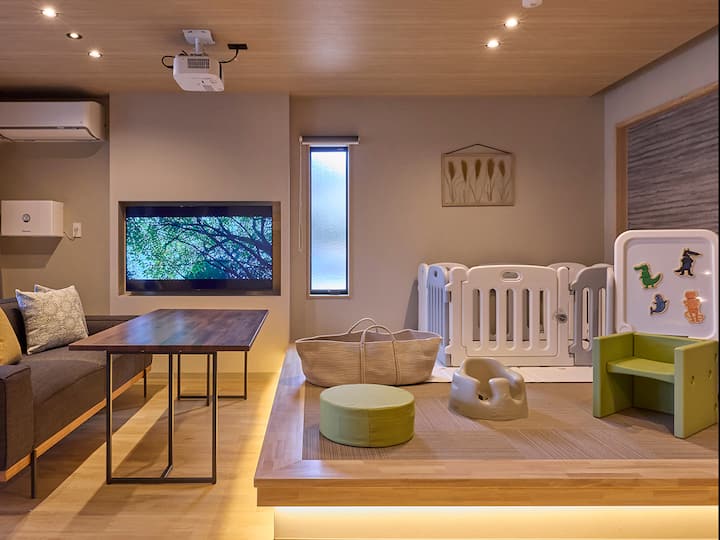 Uživajte u privatnom prostoru s ekskluzivnom prirodnom toplom kupeljom, projektorom, izdignutim prostorom za sjedenje s tatamijem, terasom i kuhinjom.