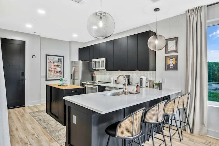 Uživajte u panoramskom pogledu na grad koji se pruža iz ovog dizajnerskog stana na zadnjem katu u Nashvilleu. Ovaj moderni smještaj s elegantnim završnim detaljima, pametnim dizajnom i privatnim balkonom vaša je polazišna točka za istraživanje svega, od lokalnih popularnih mjesta do kultne glazbene scene u centru grada koja je udaljena svega nekoliko minuta.