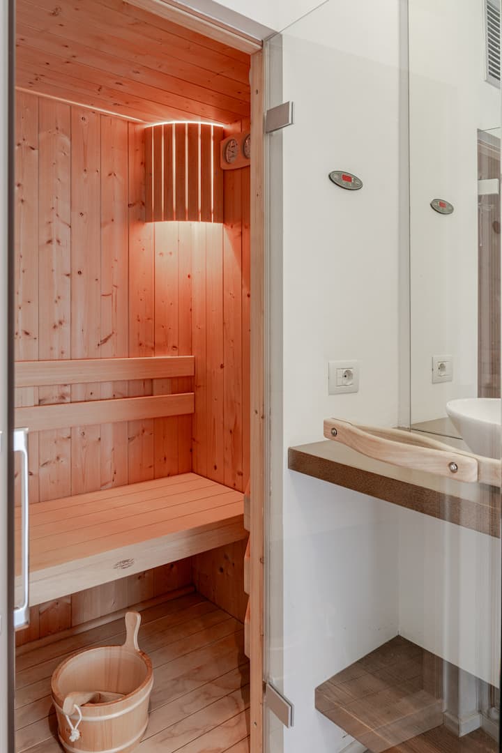 U kupaonici koja se nalazi u glavnoj spavaćoj sobi nalazi se prava finska sauna. To je savršen način da se opustite nakon treninga u privatnoj teretani ili nakon dana provedenog u istraživanju predivnih staza za trčanje ili vožnju biciklom koje se nalaze u neposrednoj blizini zgrade.