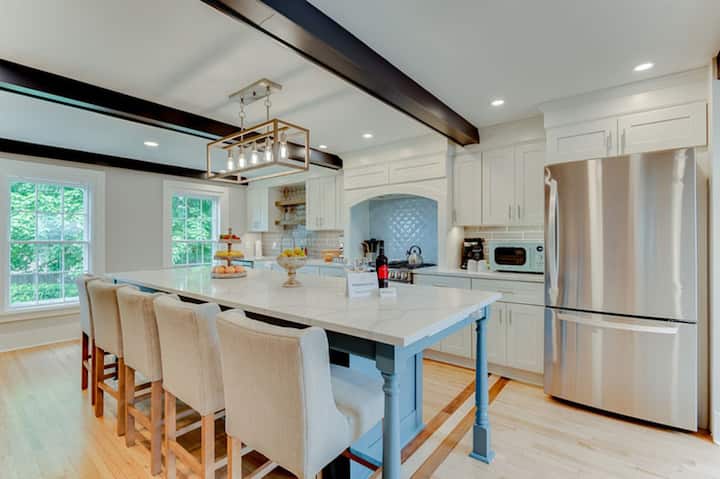 Kuhinja: veliki kuhinjski otok od kvarca sa sjedećim mjestima za 6 osoba, iznimno veliki hladnjak, mikrovalna pećnica, plinski štednjak, veliki sudoper s drobilicom za ostatke hrane, perilica za posuđe, posuđe za posluživanje, mjerice i žlice za mjerenje, zdjele za miješanje, lim za pizzu, lim za kolače, kutlača, lopatice, žlice za kuhanje, lopatica, daske za rezanje, šalice za kavu, tanjuri, zdjele, čaše, pribor za jelo za više od 14 osoba