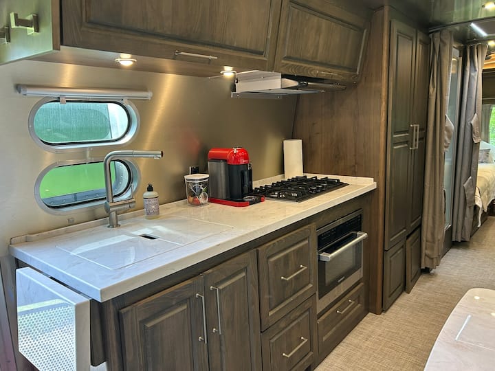 U Port Stanley preselili smo se 2024. godine i renovirali smo ranč koji je imao izvrsnu strukturu, ali i ogromnu količinu tapeta s cvjetnim uzorkom. Vrtovi su sljedeći (trenutačno više „prije” nego „poslije”) s vizijom da upotpune okolnu karolinijsku šumu. U međuvremenu, sviđaju nam se šetnje ovim selom na obali jezera, izvrsni restorani i jedinstvena mjesta za razgledavanje i uživanje. Ovo je naš treći Airstream i zaista je predivan.
