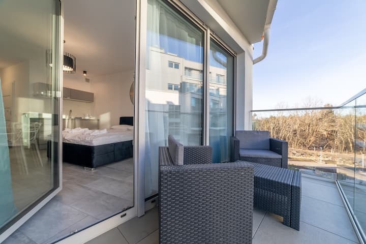 Stan se nalazi na prvoj obali, tik uz obnovljenu šetnicu, punu restorana, kafića i trgovina. U susjedstvu se nalazi i Spa Park, odlično mjesto za šetnje među zelenilom. Zahvaljujući blizini biciklističkih i pješačkih staza možete lako doći do obližnjih znamenitosti.