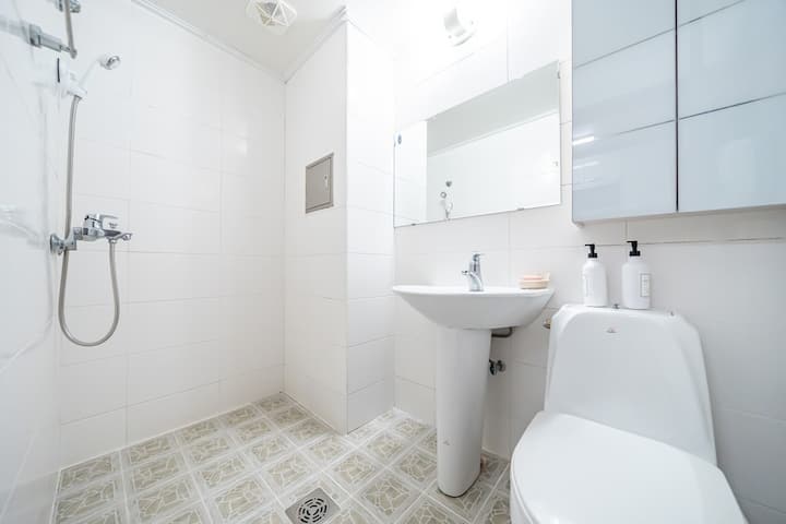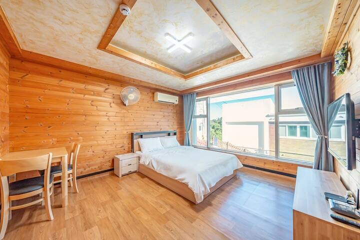 Ispred pansiona nalazi se kopno i plaža s mirnim valovima i plitkim morem, što je dobro za obiteljske igre, a iza pansiona nalazi se poznata pješačka staza, planina Mireuksan, s bujnim šumama, tako da možete uživati u planinama i moru u isto vrijeme.