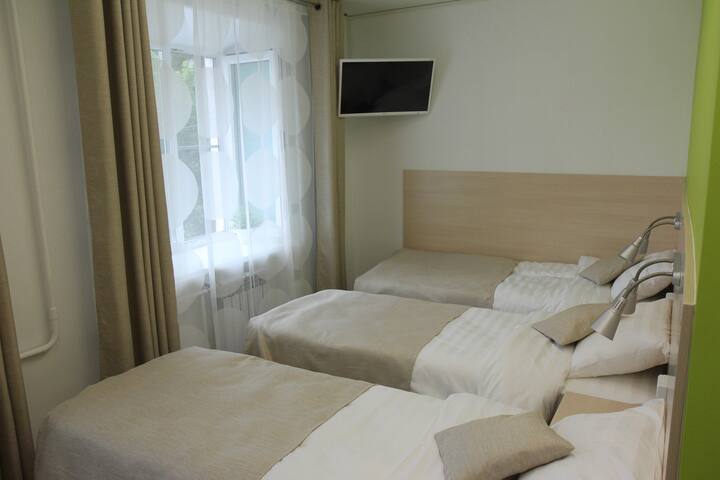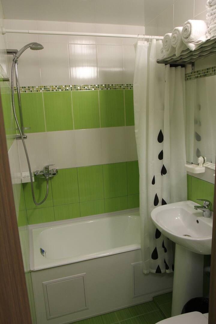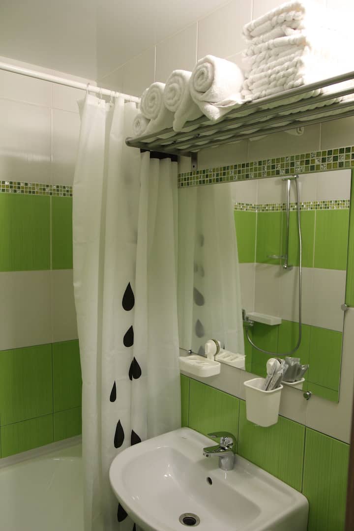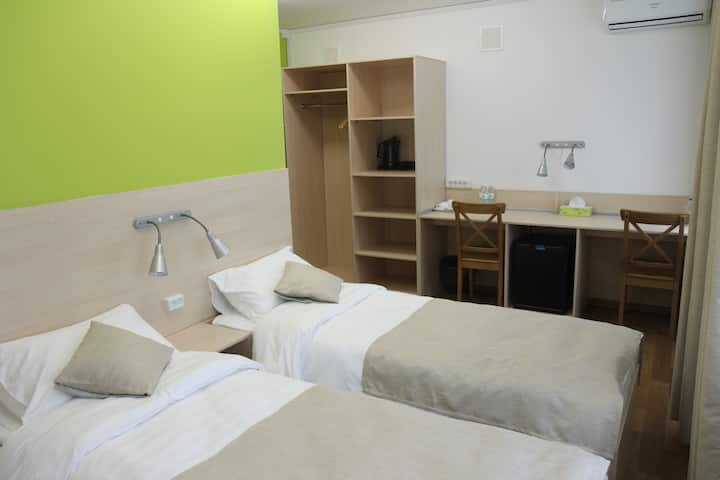 Sobe imaju udobne krevete i madrace, svježu posteljinu, TV, hladnjak, čajnik (voda, čaj, kava), pa čak i sušilo za kosu (da, djevojke, možete ostaviti sušilo za kosu kod kuće =). Svaka soba ima vlastitu kupaonicu.