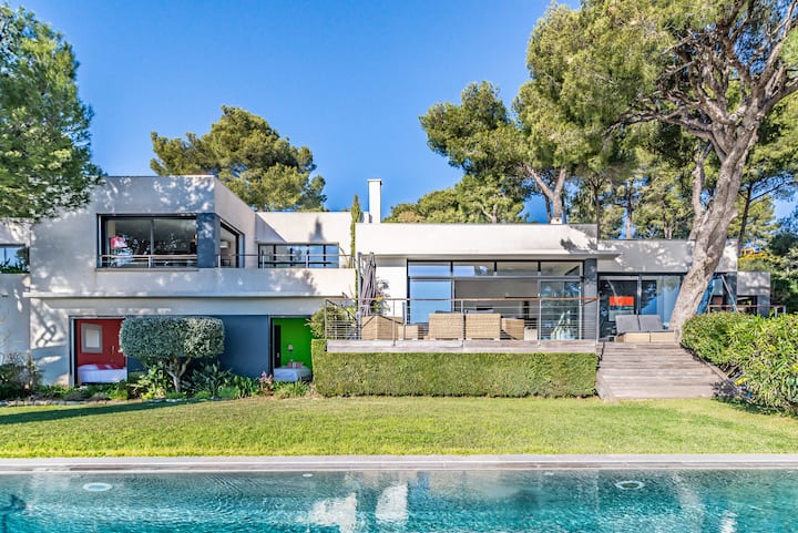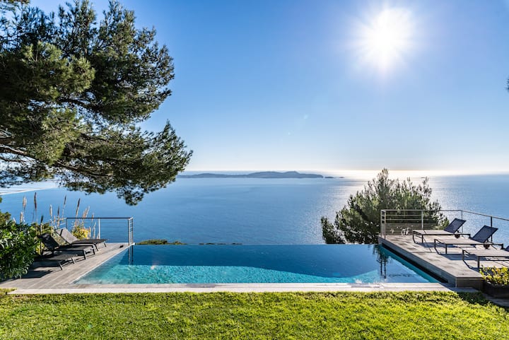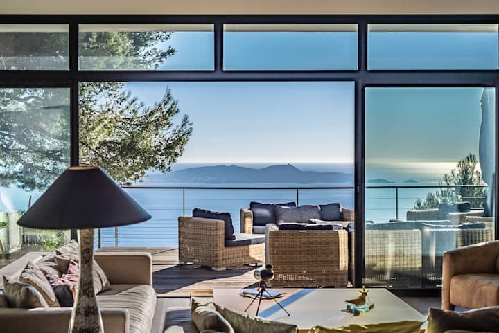Između Hyèresa i Carqueirannea nalazi se moderna vila od 280 m² koja nudi izniman pogled na Sredozemno more, solanu cestu i Zlatne otoke. Potpuno klimatiziran i uređen u elegantnom i profinjenom stilu, ima sve udobnosti koje želite.