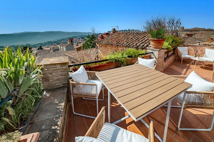 Apartman Scacco - Terasa i pogled na kulu Torre degli Sciri