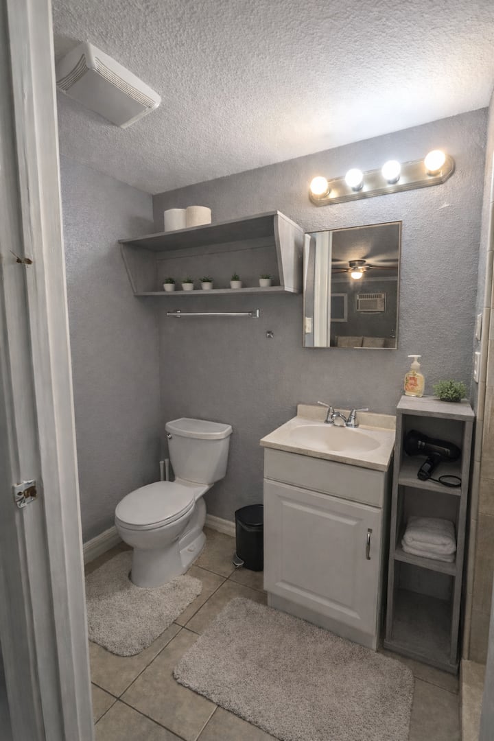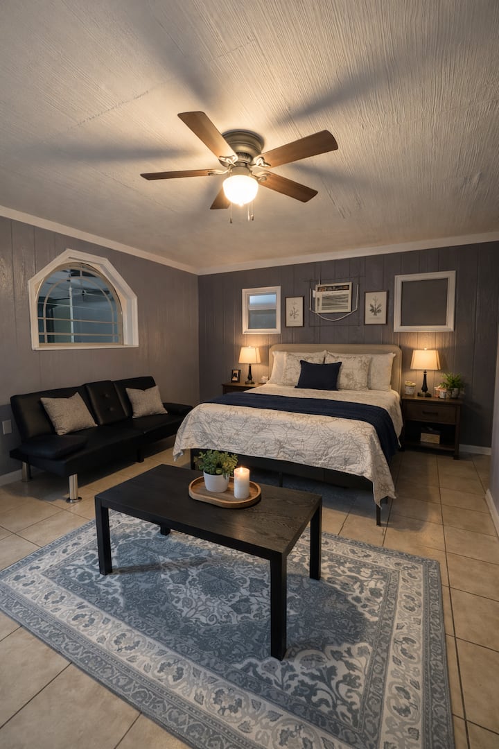 Uživajte u jednostavnom, ali udobnom smještaju u ovom apartmanu s jednom spavaćom sobom koji je savršen za putnike koji traže dobar omjer cijene i kvalitete i praktičnost. Prostor ima udoban bračni krevet, pametni televizor od 65 inča za opuštajuće večeri i potpuno opremljenu kuhinju sa svim osnovnim sadržajima koji su vam potrebni za pripremu jela. Nije otmjeno, ali je čisto, udobno i povoljno – upravo ono što vam je potrebno za boravak bez stresa!