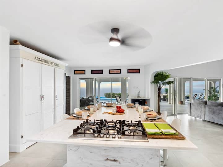Uživajte u svom ekskluzivnom bazenu koji se doima kao da se slijeva u azurno Karipsko more. Opustite se na suncem obasjanoj terasi s tropskim pićem u ruci i pustite da vas nježni povjetarci Sint Maartena oslobode svih briga. Ovo je vaš privatni komadić raja koji nudi neusporedivo opuštanje i predivan pogled od izlaska do zalaska sunca.