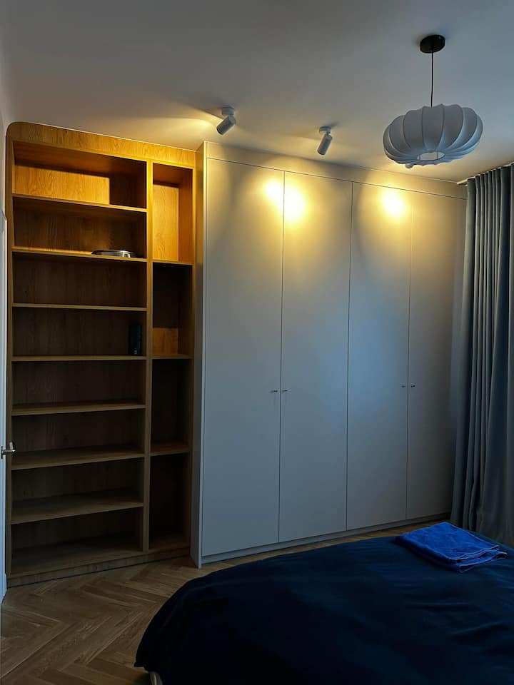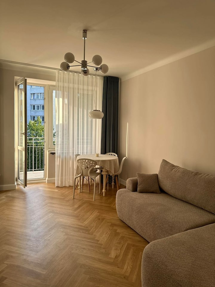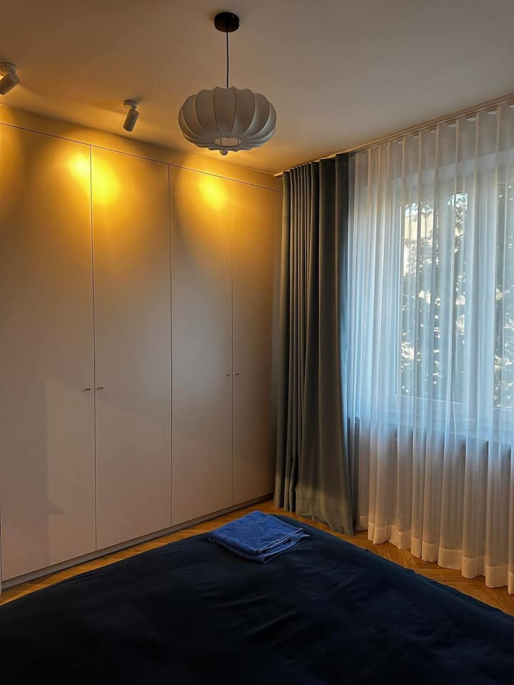 Prekrasan svijetao dvostrani stan s velikim balkonom. Stan je dobro povezan, stanica podzemne željeznice Dworzec Gdański udaljena je samo 3 minute hoda, odakle možemo doći do stanice podzemne željeznice u središtu za 6 minuta, 5 minuta do tramvaja i autobusne stanice odakle možemo doći do centra ili starog grada za 10 minuta, kao i 12 minuta hoda do novog grada. Apartman se nalazi u samom srcu četvrti Żoliborz, 2 minute hoda od Muzeja poljske povijesti. Stan je svježe renoviran.
