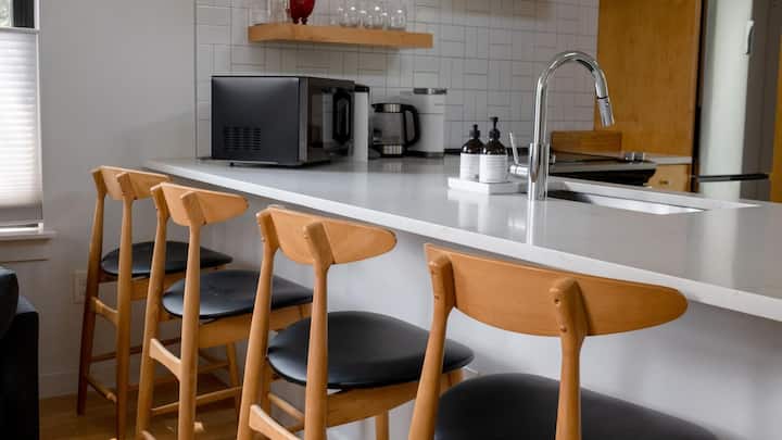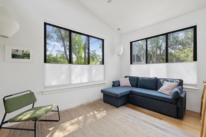 Pobjegnite u ovaj šarmantni, potpuno namješteni jednospavni apartman s jednom kupaonicom i garažom koji se nalazi u živopisnoj četvrti East Austin. Idealno za parove, obitelji ili male grupe, ovo udobno utočište može udobno primiti do 4 gosta, s praktičnim kaučem na razvlačenje u dnevnom boravku. Ovaj je smještaj idealan za one koji žele iskusiti sve što East Austin nudi, dok uživaju u mirnom i udobnom prostoru za opuštanje. Imat ćete pristup cijelom stanu u garaži, zajedno sa zajedničkim vanjskim sadržajima, uključujući: bazen, stol za stolni tenis i igralište. Bez obzira na to jeste li u gradu zbog posla, vikend-putovanja ili duljeg boravka, ovaj smještaj ima sve što vam je potrebno za opuštajući odmor. Rezervirajte već danas kako biste ostali neko vrijeme i stvorili nezaboravne uspomene u Austinu!