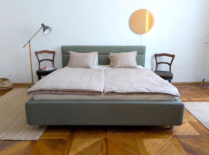 S strašću prema prirodnim materijalima i velikim poštovanjem prema mirnoj podršci koju prekrasan, dobro uređen smještaj može pružiti, uložili smo mnogo ljubavi i truda u uređenje ovog stana. Pozivamo vas da budete naš gost i vjerujete da ćete se prema našem smještaju odnositi s poštovanjem.
