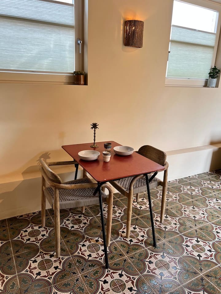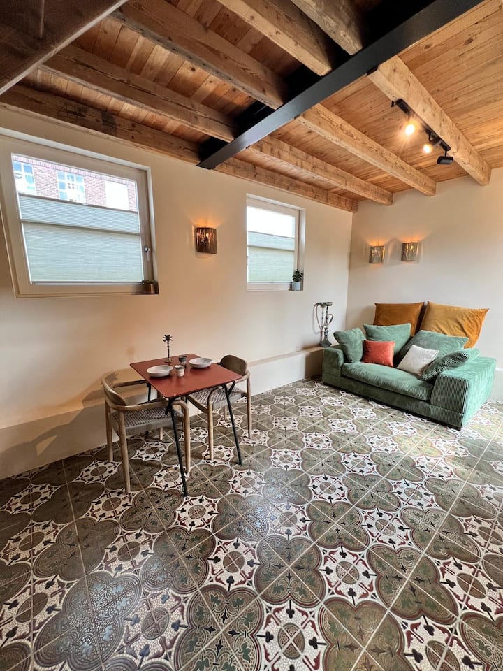Ova je minijaturna kuća doista jedinstvena jer u njoj se spajaju autentični, ručno izrađeni elementi i jedinstvena priča. Sagrađena u vrtu tradicionalne nizozemske kuće u nizu, sama struktura odražava arhitektonski šarm starog Eindhovena. Ovaj loft s ručno izrađenim detaljima spaja povijest i dušu, a tu su i obnovljene pločice iz nekadašnjeg samostana, zid od gline, drvene grede i kuhinja s mramornim radnim površinama. Sagrađen u vrtu tradicionalne nizozemske kuće u nizu, to je topao, poetski prostor koji ćete pamtiti.