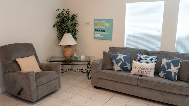 Ovo je prizemlje, tako da nema stepenica i nema vuče opreme za plažu! Uključena su 2 besplatna parkirališna mjesta izvan ulice. Ovaj prostor pružit će vam mali patio, a kad uđete, primijetit ćete podove prekriveni pločicama i visoke stropove koji će vam dati osjećaj svjetline i čistoće.