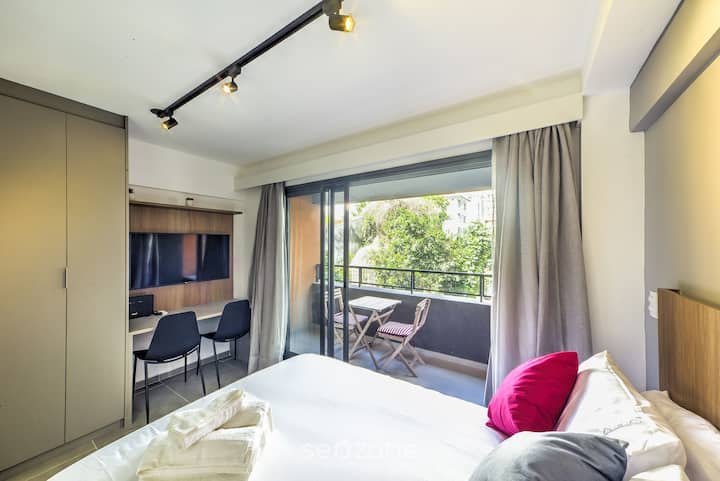Ovaj moderni studio nudi bračni krevet, dodatni krevet, klima-uređaj, Smart TV i Wi-Fi za praktičan i udoban doživljaj. Ima potpuno opremljenu kuhinju, veliki balkon s pogledom i sve sadržaje koji su vam potrebni. Zgrada ima teretanu i bazen. Smješteni u Perdizesu, 120 metara od kazališta Tuca, bit ćete samo nekoliko koraka od tržnica i restorana.