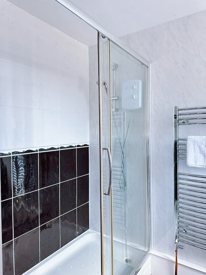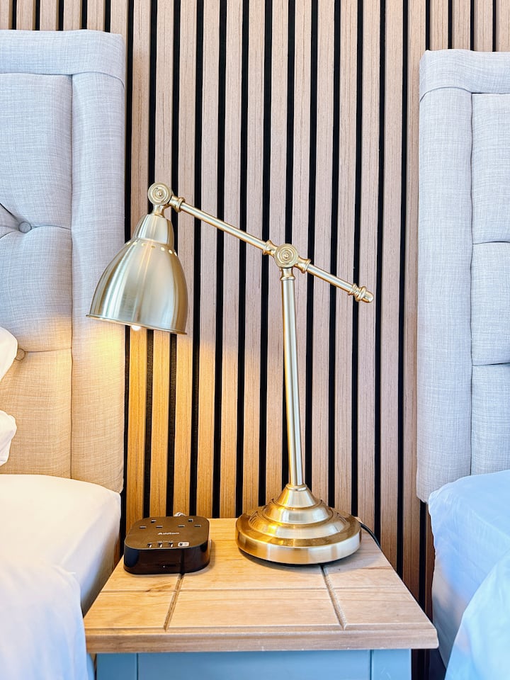 Dobro uređena soba s dva odvojena kreveta i vlastitom kupaonicom