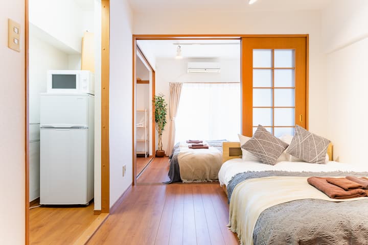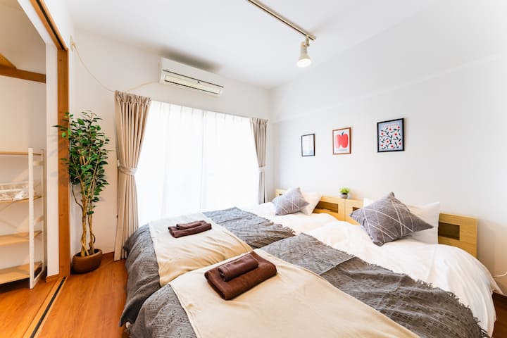 Soba koju nudite je čista, a mi ćemo vam osigurati najbolji san s hotelskom posteljinom.Spavaće sobe odvojene su kliznim vratima kako bi se stvorio otvoreni prostor, a istovremeno se održava privatnost.Osim toga, u stražnjoj spavaćoj sobi nalaze se polubračni i jednostruki kreveti, a u prednjoj spavaćoj sobi nalazi se bračni krevet, tako da broj osoba možete rasporediti čak i na 3: 1 ili 2: 2.