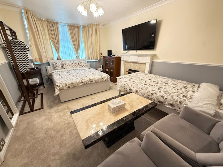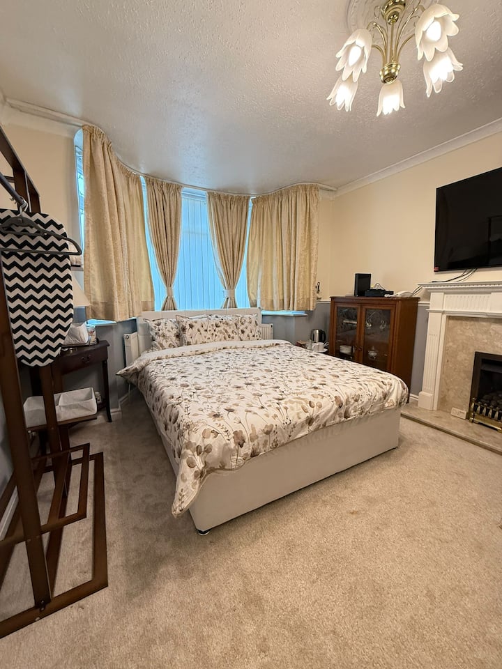 Uživajte u ugodnom smještaju za par u Birminghamu! Naša privatna soba nudi udoban bračni krevet, besplatan Wi-Fi i besplatan parking. Zajednička kupaonica čista je i praktična. Osvježite se besplatnim Coca-Colom, vodom i grickalicama. Idealno za parove koji traže miran smještaj u blizini lokalnih znamenitosti. Rezervirajte odmah i uživajte u udobnosti, praktičnosti i izvrsnom gostoprimstvu tijekom svog posjeta. Savršena soba za obitelji, parove, samce, poslovne goste i druge posjetitelje!