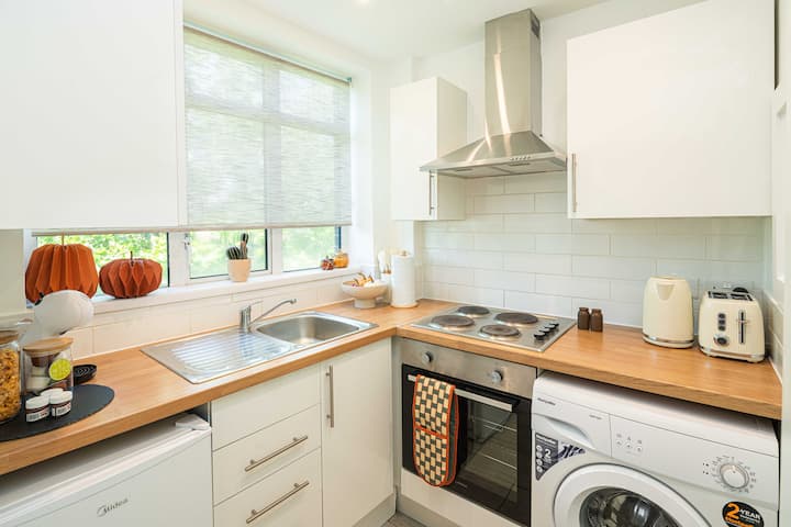 Za one koji dolaze automobilom, u blizini se nalaze plaćene mogućnosti parkiranja, a stan je lako dostupan liftom u zgradi, tako da ne morate brinuti o stepenicama. Ovaj udoban stan nudi sve što vam je potrebno za savršen boravak u Londonu.