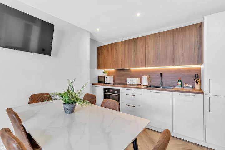 Dobrodošli u Hove Alone 5, Top Flat – elegantan stan na najvišem katu u samom srcu Hovea, samo nekoliko trenutaka od kultne obale Brightona, trgovina i noćnog života. Ovaj apartman s dvije spavaće sobe može primiti najviše 6 gostiju, a u dnevnom boravku koji je ispunjen svjetlošću nalazi se sofa na razvlačenje. U njemu se nalazi potpuno opremljena kuhinja s perilicom posuđa, perilicom/sušilicom i električnom pločom za kuhanje.