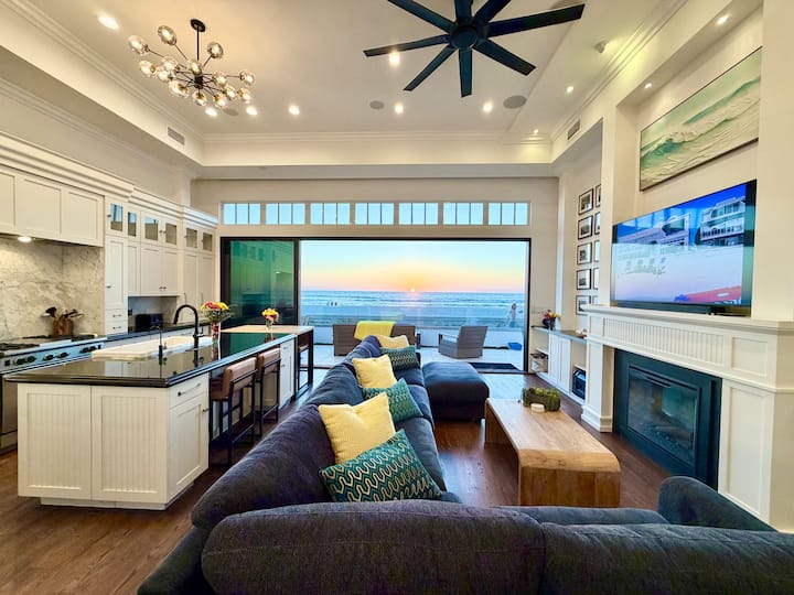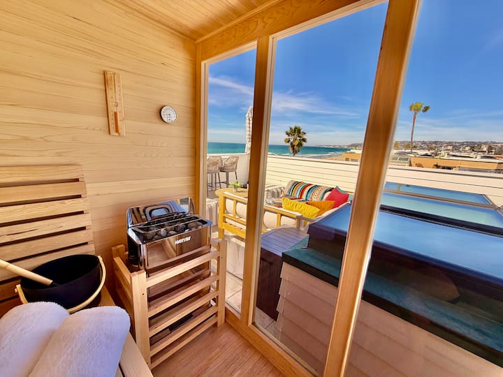 Vaše privatno utočište uz more na šetnici Mission Beacha. Probudite se uz zvuk valova, vježbajte na krovu s pogledom na Tihi ocean, opustite se u privatnoj sauni i istražujte na besplatnim biciklima. Ovo arhitektonsko remek-djelo s 4 spavaće sobe ima stropove visoke 5,8 metara, staklene zidove na uvlačenje, wellness terasu na krovu i interijere inspirirane spa centrom. Može primiti 14 osoba. Uključuje dnevni pristup klubu FIT Athletic Club i opremu za plažu. Savršeno za luksuzna obiteljska putovanja, proslave važnih događaja ili odmor na obali.