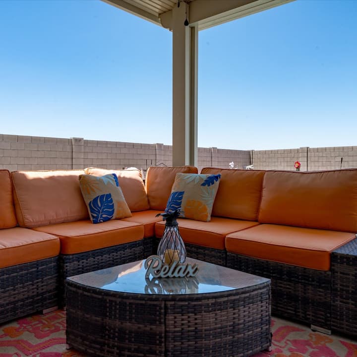 ✔ Potpuno ograđeno rajsko stražnje dvorište – pijte tropske koktele, roštiljajte ili se jednostavno opustite na natkrivenoj terasi s prostorom za 10 ljudi. Sunce koje sja tijekom cijele godine čini ovu lokaciju u Arizoni savršenom za odmor.