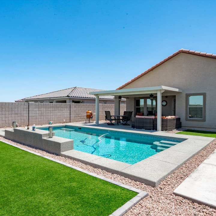 Pripremite se za odmor života u našoj novoj kući s 3 spavaće sobe, savršeno dizajniranoj za opuštanje, obiteljska okupljanja i avanture. Smješten na nenadmašnoj lokaciji, imat ćete jednostavan pristup Phoenixu, Tucsonu i više od 28.000 hektara prirodnih rezervata i parkova, uključujući državni park Picacho Peak, park South Mountain i regionalni park San Tan Mountain.
