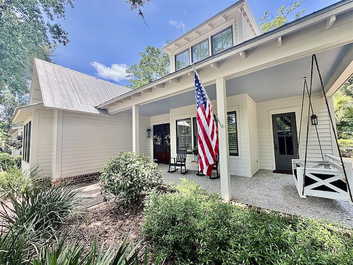 Dobro došli u idealno mjesto za odmor u Lowcountryju, smješteno u traženom, obiteljskom području Wilson Lawn and Racquet Area u Palmetto Bluffu. Ovaj prostrani i lijepo uređeni smještaj s 4 spavaće sobe i 4 kupaonice može udobno primiti do 12 gostiju i nudi savršen spoj južnjačkog šarma, modernog luksuza i nenadmašne lokacije!