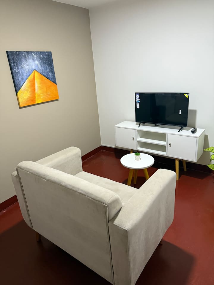Uživajte u modernom i udobnom studio apartmanu u Los Olivosu, idealnom za kratke ili duže boravke u sjevernoj Limi. Potpuno je namješten, a nudi bračni krevet, dnevni boravak s TV-om, blagovaonicu, opremljenu kuhinju, Wi-Fi i perilicu rublja.