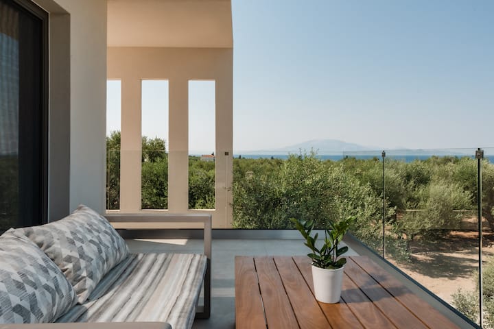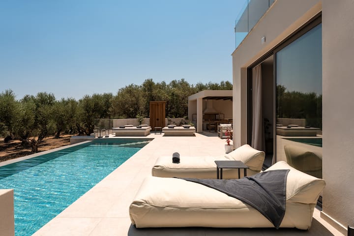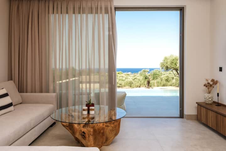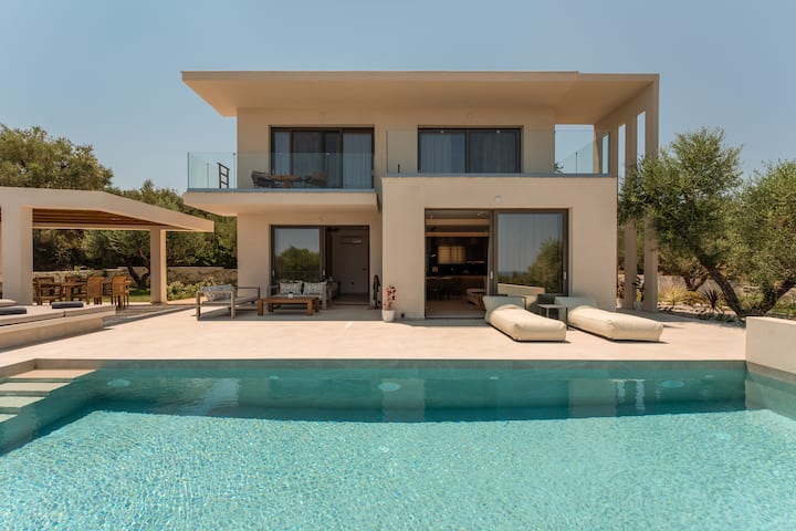 Potpuno nova*Smještena na mirnom brežuljku u mirnoj Kipseli, Floralba Luxury Villa uzdiže se iznad svjetlucavog Jonskog mora, okružena mirnim veličanstvom maslina. Ovo utočište, netaknuto bukom i susjedima, šapuće samo jezikom cvrčaka i povjetarca preljubnih sa solju, nudeći profinjenu samoću koja umiruje dušu. U neposrednoj blizini nalaze se plaže s baršunastim pijeskom, a poznata obalna naselja Tragaki i Tsilivi čekaju vas sa svojim konobama, finim vinima i otočkim šarmom.