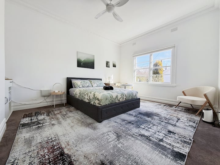 Klasična kuća s 3 spavaće sobe u centru Ballarata s tradicionalnim vanjskim dijelom i modernim interijerom. Uživajte u udobnom rasporedu s 2 kupaonice, dobro opremljenom kuhinjom i udobnim dnevnim boravkom/blagovaonicom – idealno za obitelji, parove ili male grupe. Uključena je natkrivena parkirna mjesta i besplatno parkiranje na ulici. Blizu kafića, trgovina i lokalnih atrakcija. Popusti na duže boravke automatski se primjenjuju.