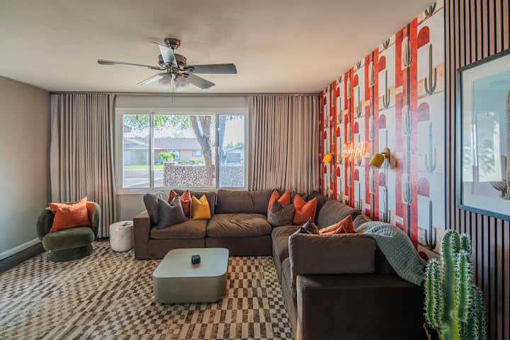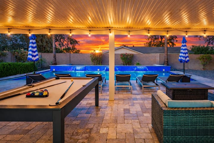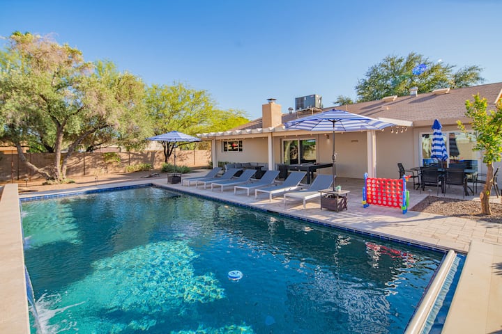 Dobro došli u Stayguaro! Novo utočište u Scottsdaleu osmišljeno za udobnost, zabavu i stil, udaljeno samo nekoliko minuta od Starog grada. Ovaj smještaj s 4 spavaće sobe i 2 kupaonice osmišljen je kako bi vam omogućio besprijekoran boravak u zatvorenom i na otvorenom, potpuno opremljenu kuhinju i privatno dvorište u stilu odmarališta s privatnim grijanim bazenom, ležaljkama, natkrivenom terasom s rasvjetnim tijelima, udobnim stolom za vatru sa sofom i vanjskim igrama kao što su Cornhole, Jenga, Connect Four i bilijar, što vaš boravak čini doista iznimnim.