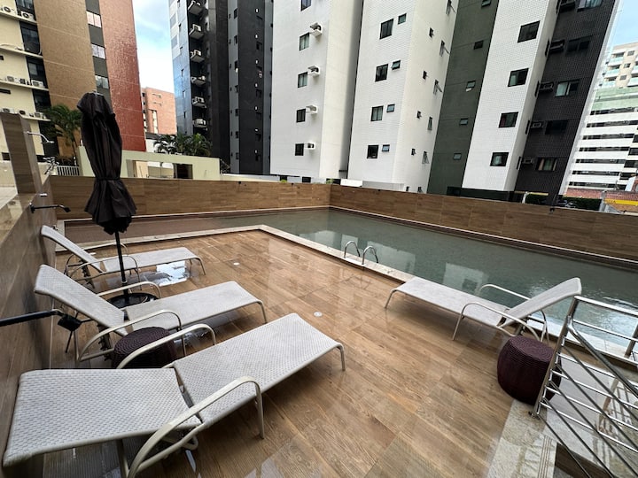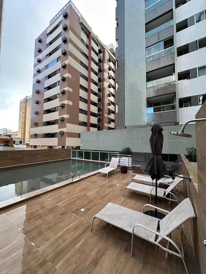 Apartman u kino centru u Ponta Verdeu s bazenom/verandom.