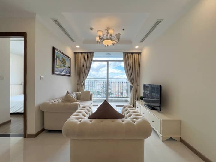 Smješten u Landmark Plusu, ovaj potpuno namješteni dvosobni stan nudi panoramski pogled na grad i rijeku Saigon, u jednoj od najprestižnijih stambenih četvrti – Vinhomes Central Park.