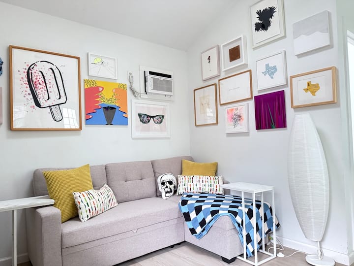 Ja sam kustos suvremene umjetnosti. Udobni, mirni prostori su mi važni, a na mojim zidovima vidjet ćete sjajnu umjetnost lokalnih umjetnika. Stalno putujem između Mexico Cityja i Austina zbog posla i ne mogu zamisliti dva bolja mjesta koja mogu nazvati domom!
