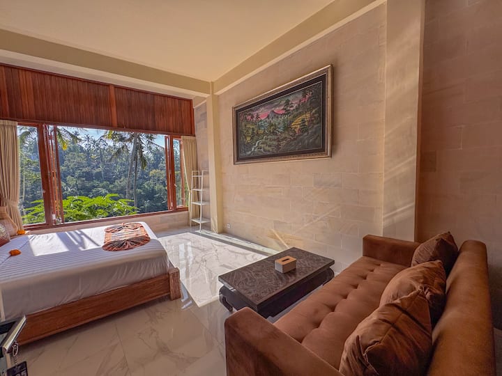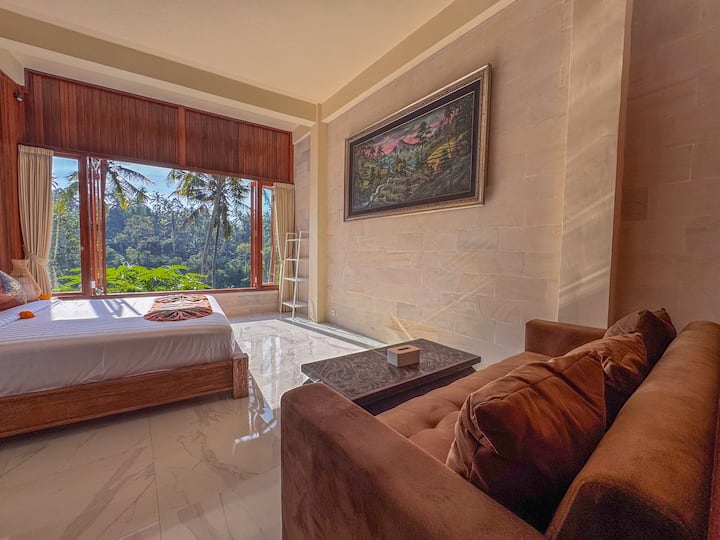 Udobna soba u šumi s velikim prozorom