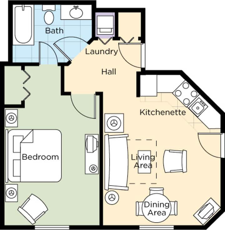 The Resort will assigned the condo building, floor, and number at check-in time. U rijetkim slučajevima odmaralište može premjestiti kondominij u drugi kondominij iste veličine i pogleda, ali drugačijeg rasporeda zbog nepredviđenih okolnosti kao što su problemi s održavanjem.