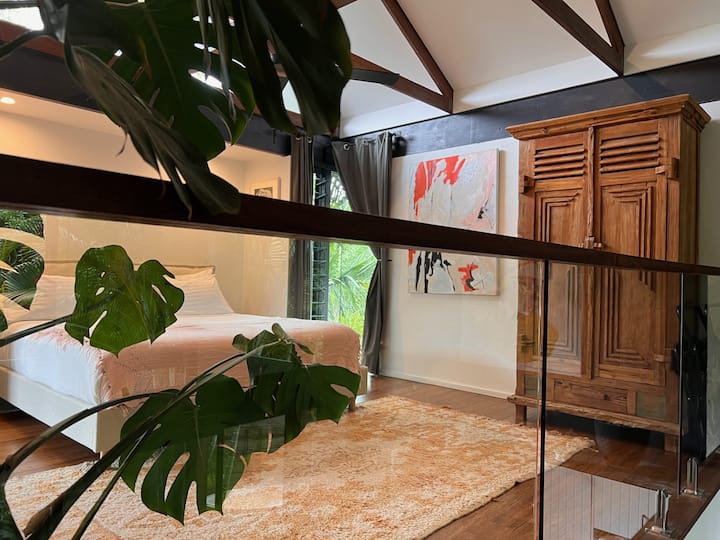 Inspirirali smo se arhitektonskim vilama na Baliju s obzirom na sličnu temperaturu i želju da stvorimo isti ambijent za opuštanje. Iznimno visoki zidovi omogućili su mi da pokažem neke od svojih umjetničkih djela, zajedno s ugošćivanjem turista u Byron Bayu.