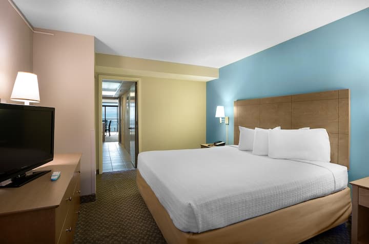 Odsjednite u apartmanu s jednom spavaćom sobom u hotelu Landmark Resort koji se nalazi na samoj obali i može primiti do 4 osobe. U spavaćoj sobi nalazi se bračni krevet, a u dnevnom boravku krevet na razvlačenje za dvije osobe. Potpuno opremljena kuhinja s osnovnim priborom za kuhanje i posuđem, jedna kupaonica i dva televizora. Uživajte na vlastitom balkonu s pogledom na Atlantski ocean. Besplatni Wi-Fi. Idealno za male obitelji na odmoru u Myrtle Beachu ili odmoru uz more.