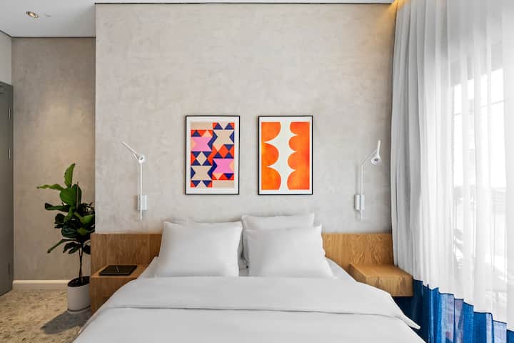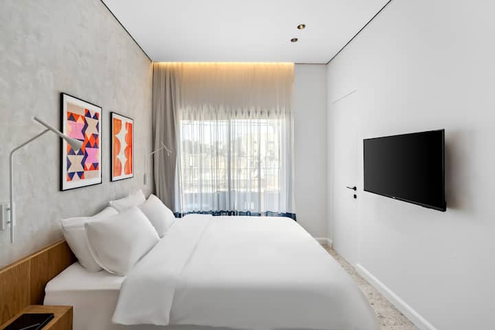 Sa zadovoljstvom vam predstavljamo vrhunsku spavaću sobu u opuštajućem hotelu 48. Nudi sve što vam je potrebno za savršen bezbrižan boravak u atraktivnom prostoru s modernim dizajnom koji nadopunjuje fantastičnu Be'er Shevu.