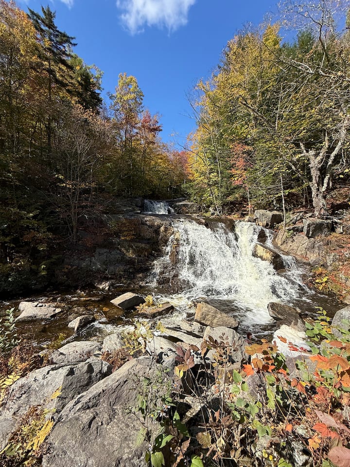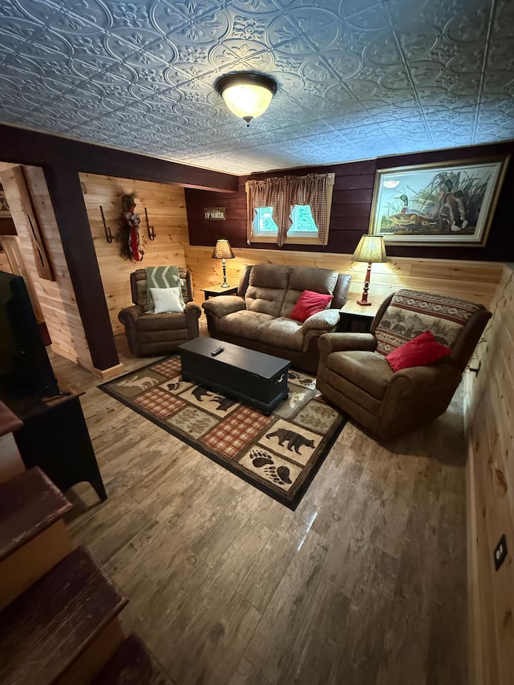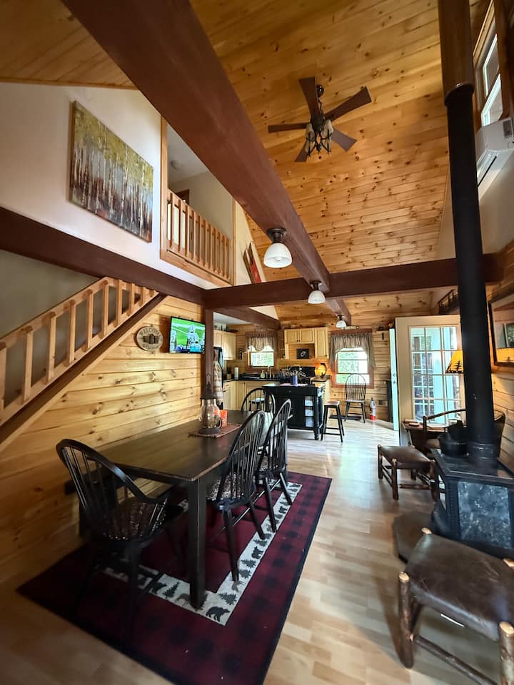 Opustite se sa svojom obitelji, samo nas dvoje ili samo vi. Naša se privatna brvnara nalazi između dvije planine! Slušajte rijeku dok pijuckate jutarnju kavu na trijemu. Izravan pristup stazi. Udobno se smjestite uz peć na drva s knjigom ili pogledajte film u prizemlju u udobnom podrumu. Nekoliko minuta od ukusne hrane i pića! Tako blizu skijališta, pješačenja, vodopada, jezera Stinson, shoppinga, ledenih dvoraca, polarnih špilja, Clarke's Trading Posta i još mnogo toga!!